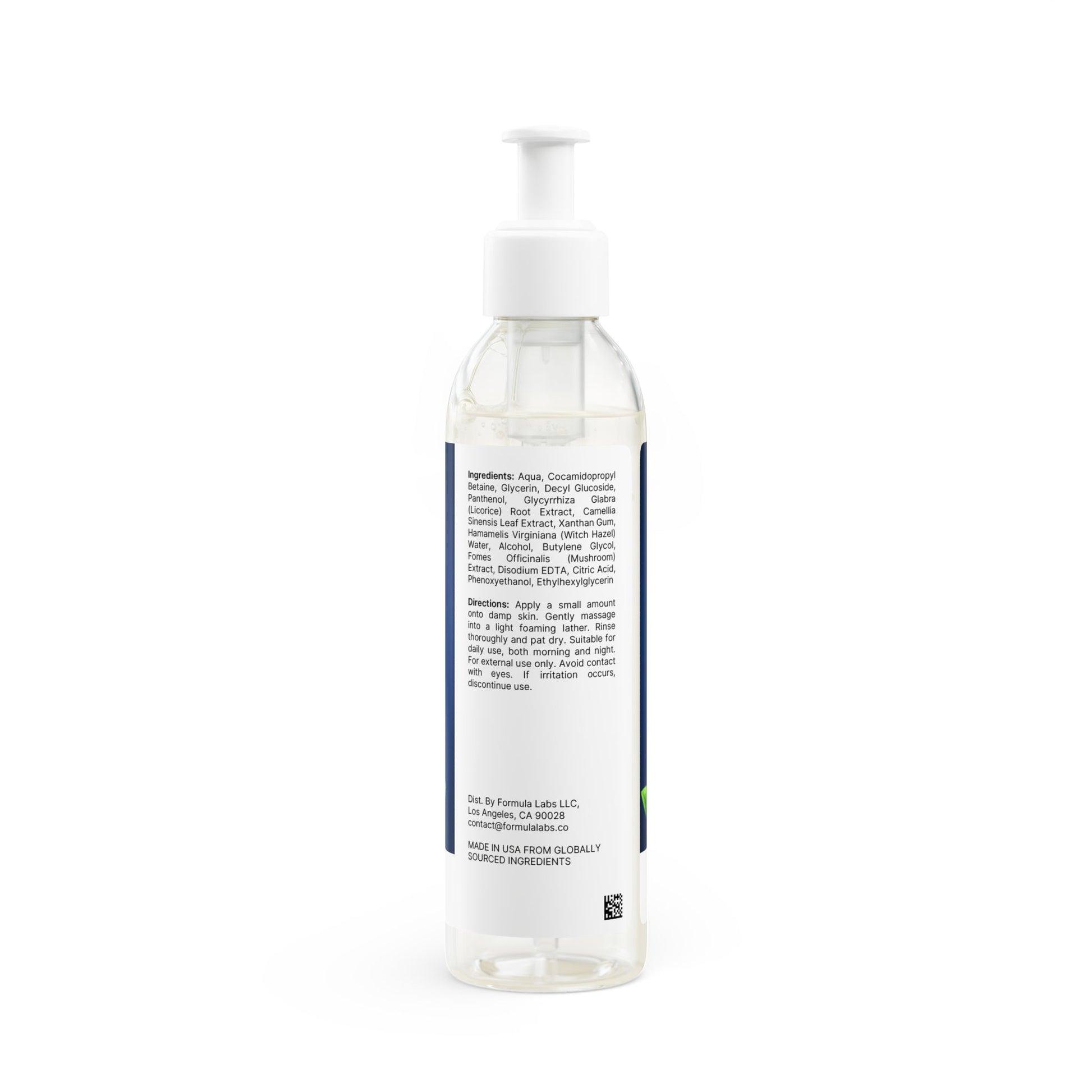 Aqua, Cocamidopropyl Betaine, Glycerin, Decyl Glucoside, Panthenol, Glycyrrhiza Glabra (Licorice) Root Extract, Camellia Sinensis Leaf Extract, Xanthan Gum, Hamamelis Virginiana (Witch Hazel) Water, Alcohol, Butylene Glycol, Fomes Officinalis (Mushroom) Extract, Disodium EDTA, Citric Acid, Phenoxyethanol, Ethylhexylglycerin.